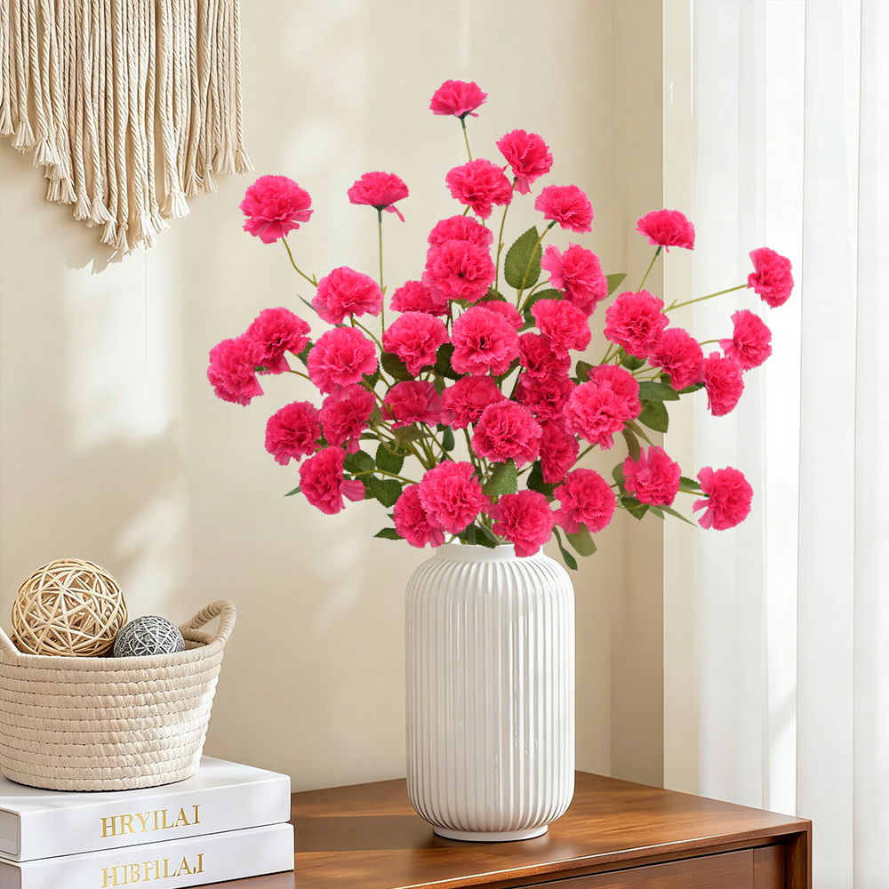 6 Heads Artificial Carnation Flowers – Realistic Fake Carnations for Home Decor, Wedding Bouquets & Party Arrangements