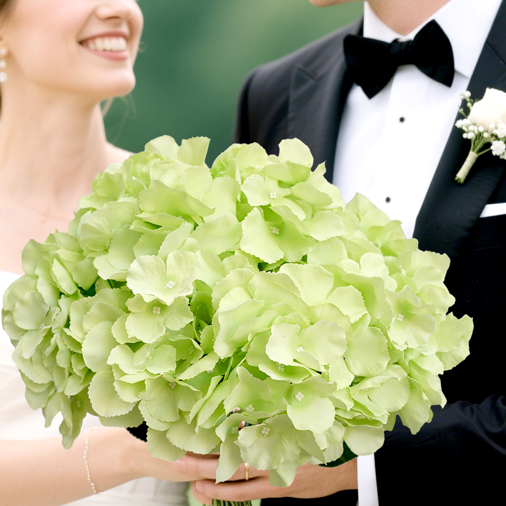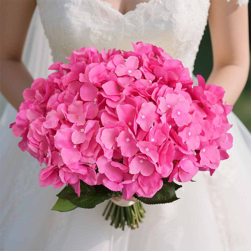 Artificial 5-fork hydrangea flowers are really fake hydrangeas in bulk, and fake brides shower DIY wedding bouquets to lead the way.