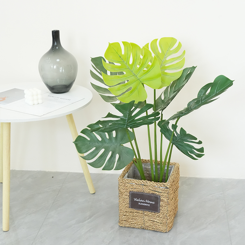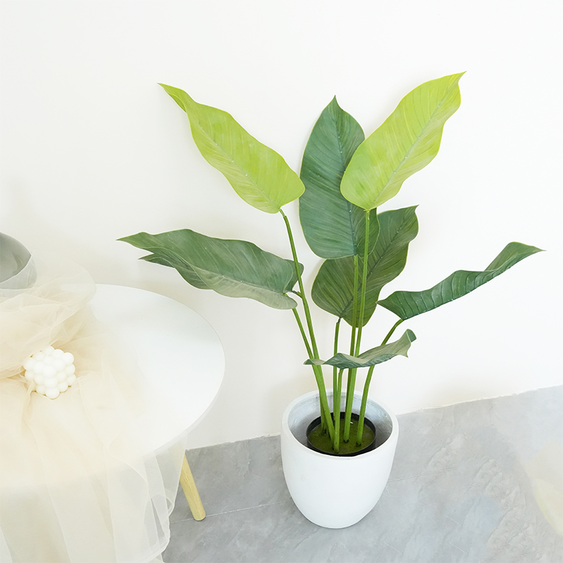 Artificial bamboo plants fake palm trees lily trees plastic turtle leaves green tall plants used for home garden room decoration.