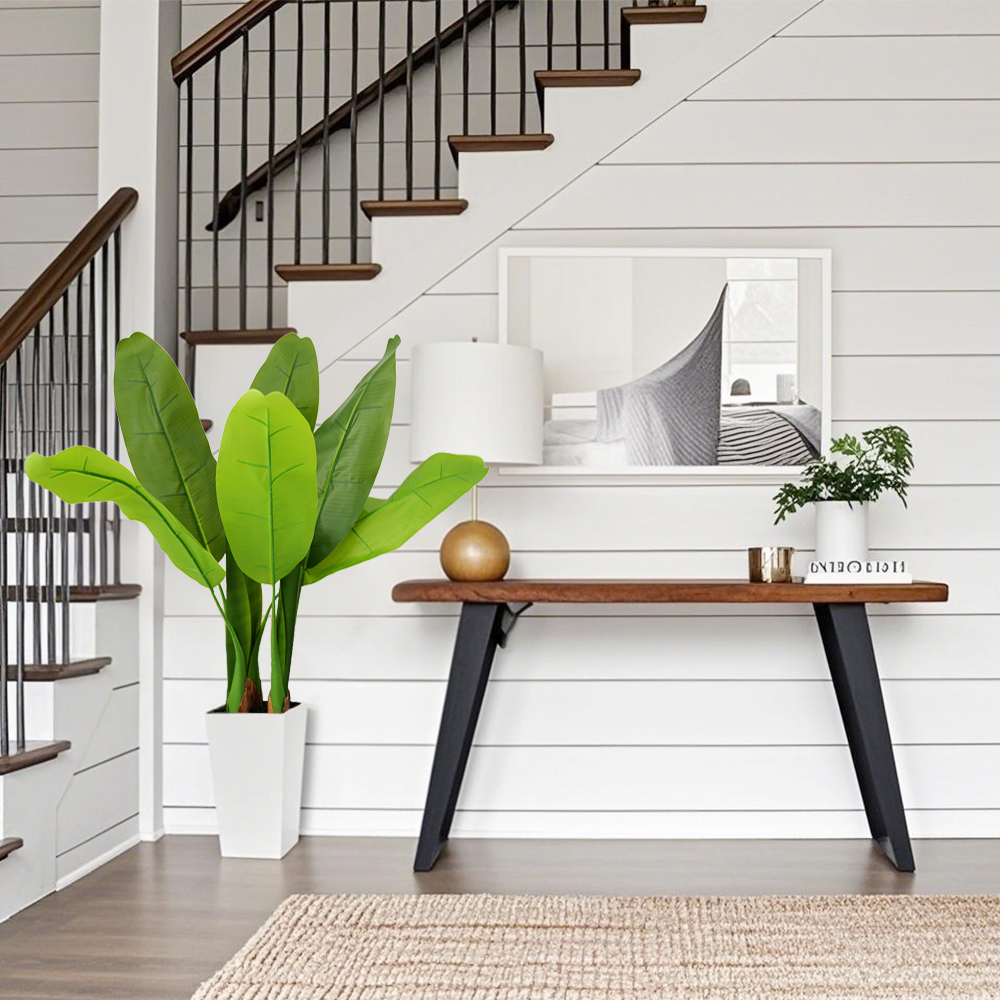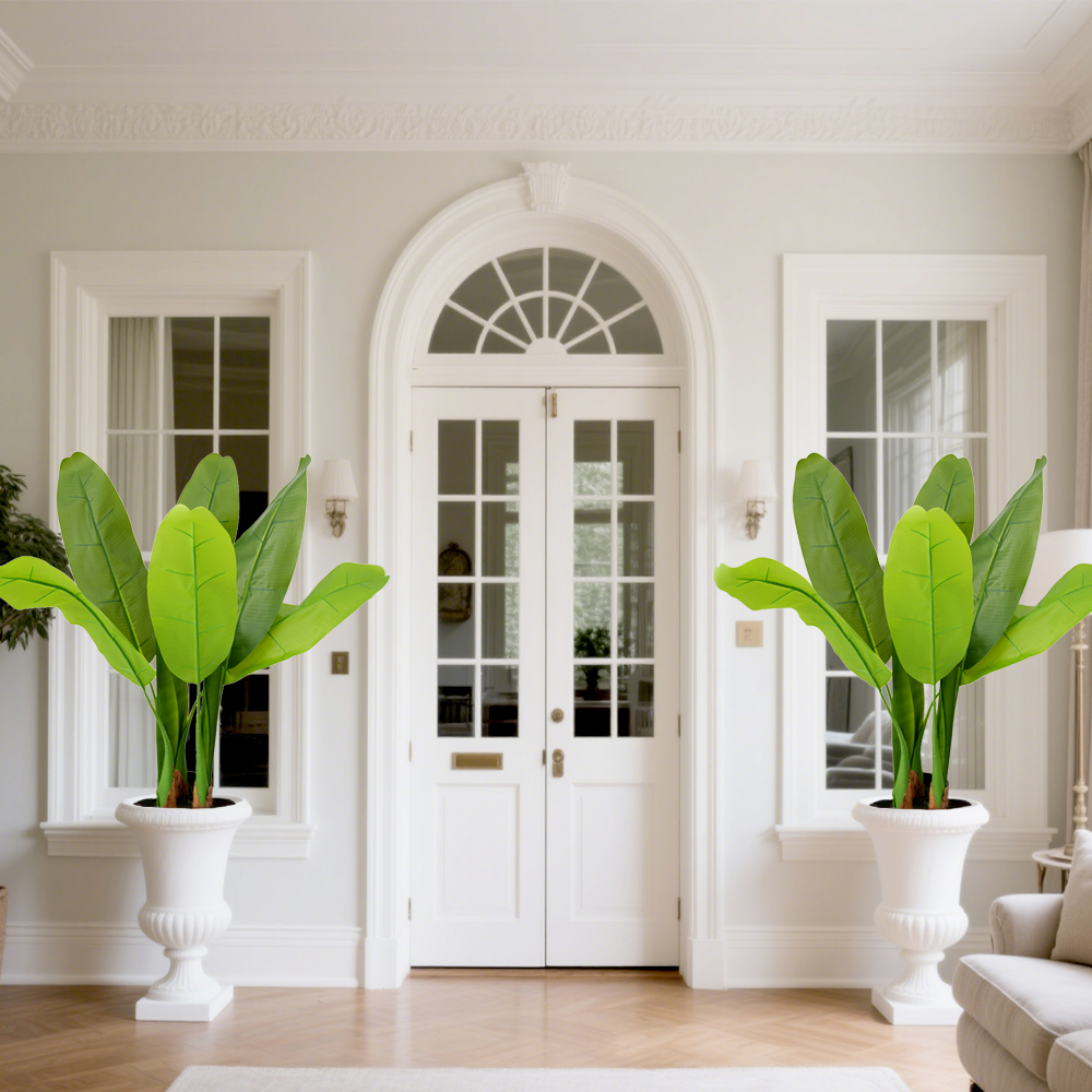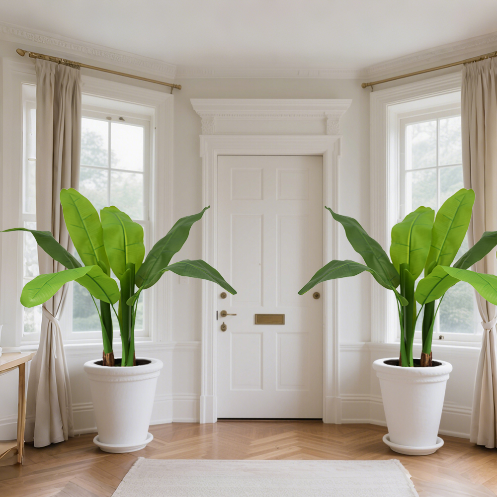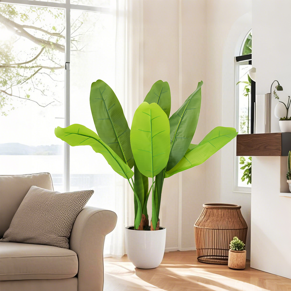 Artificial Banana Tree with Grey Planter, Artificial Plants with Banana Leaves Plant for Home Office Decor