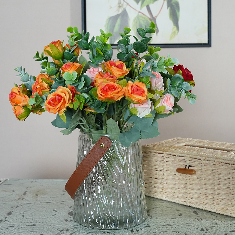Artificial bouquets of Eucalyptus rose pink silk bouquets artificial flowers bride wedding home decoration