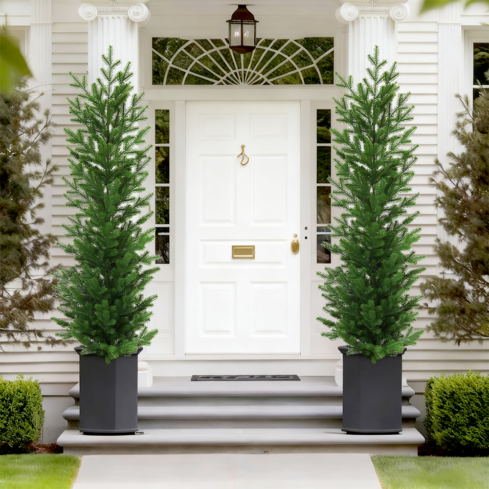 Artificial Cedar Topiary Tree Evergreen Fake Pine Cypress Trees Plant Artificial Greenery Set for Home Decor Outdoor