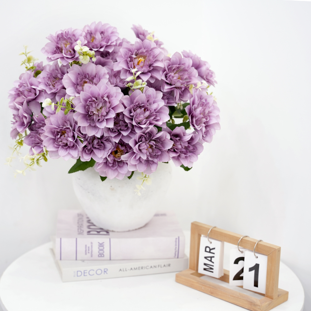Artificial Dahlia Flowers Bouquet of 5-Heads Fake Flowers for Wedding Desk Room Party Bouquet Table Centerpiece Home Decorations