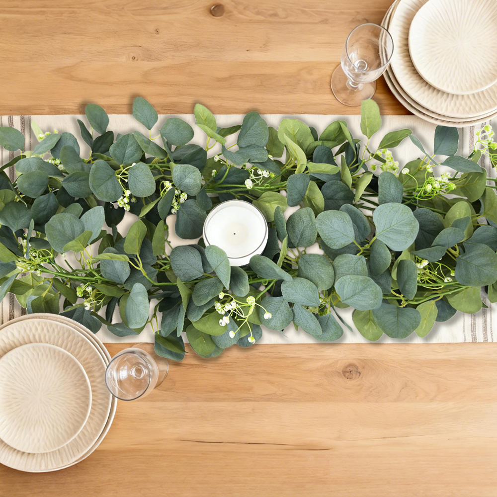 Artificial Eucalyptus Garland with Green Leaf Wreath Flower Vine for Wedding Home Party Table Runner Decoration