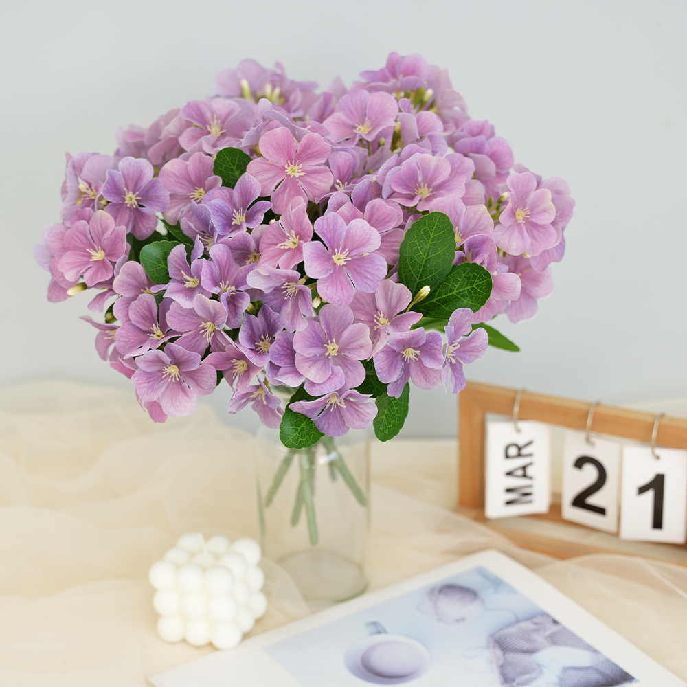 Artificial hydrangea makes the bunch of flowers look real. Fake hydrangea, large-capacity artificial bride shower, wedding bouquet with stem.