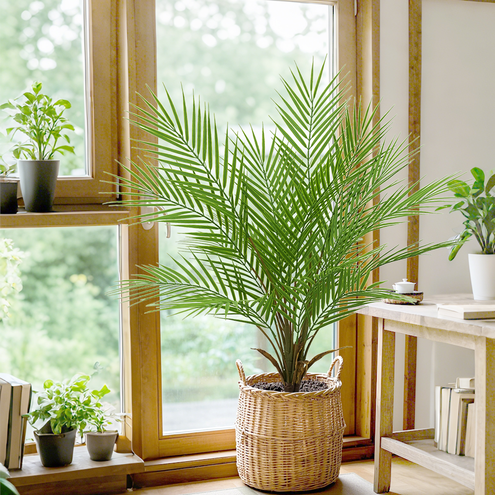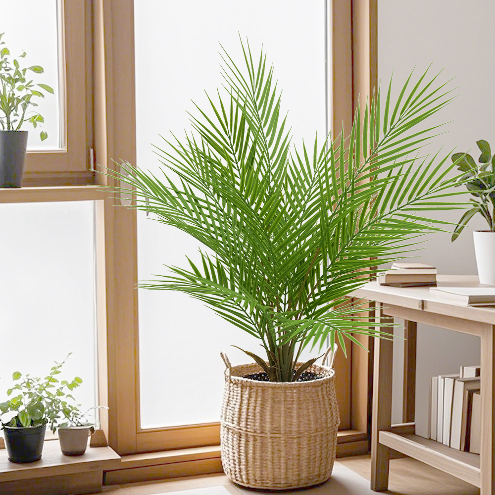 Artificial palm tree tropical false plant green plastic palm leaf bundle is suitable for home garden decoration