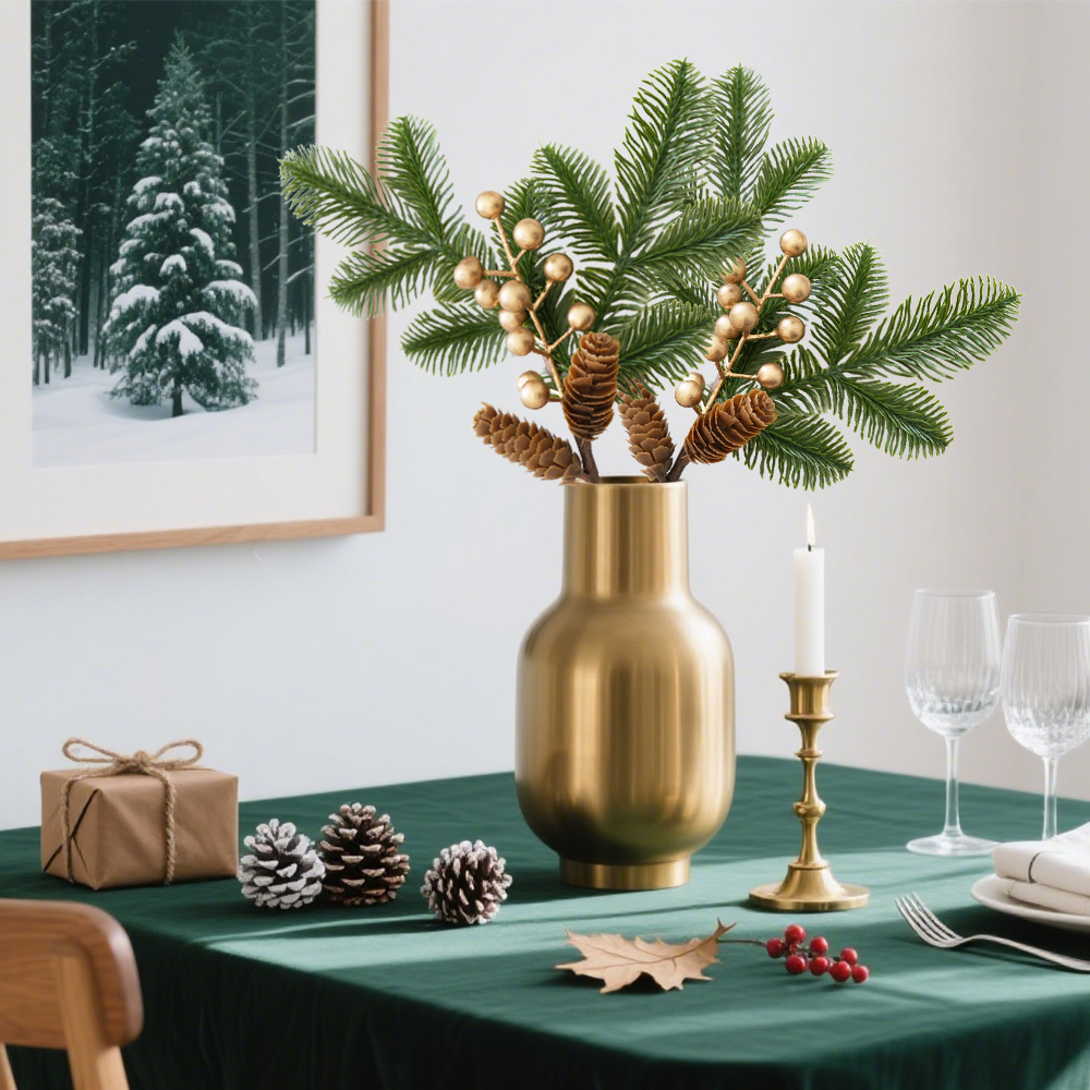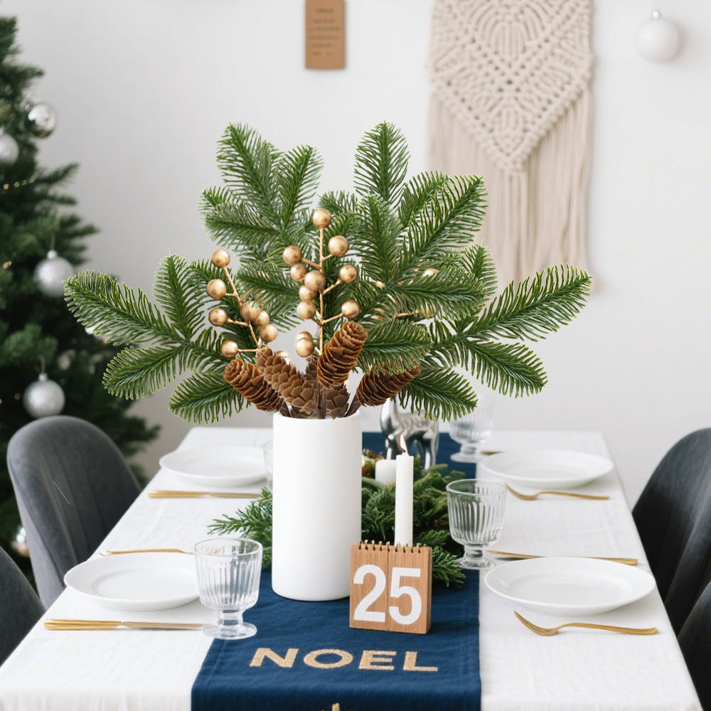 Artificial Pine Branch Red Berry Pine Cones Branch Wreath Xmas Tree Realistic Pine Needles Tablescape Gift Holly Branch Ornament