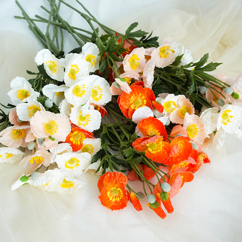 Artificial Silk Flowers Simulation Poppies Wedding Decoration Long Fake Poppy Branch Home Table Decor Ornaments Wedding Flowers