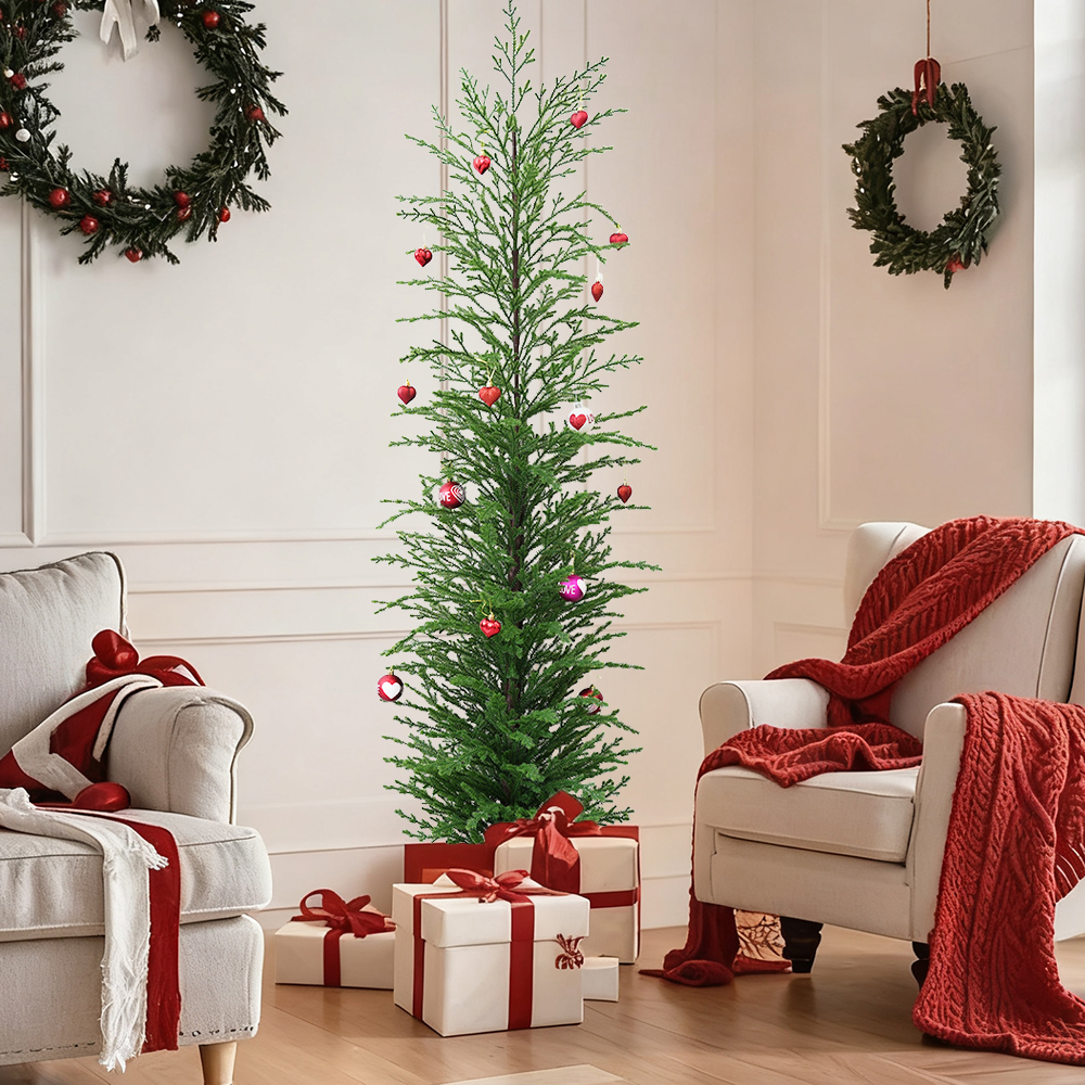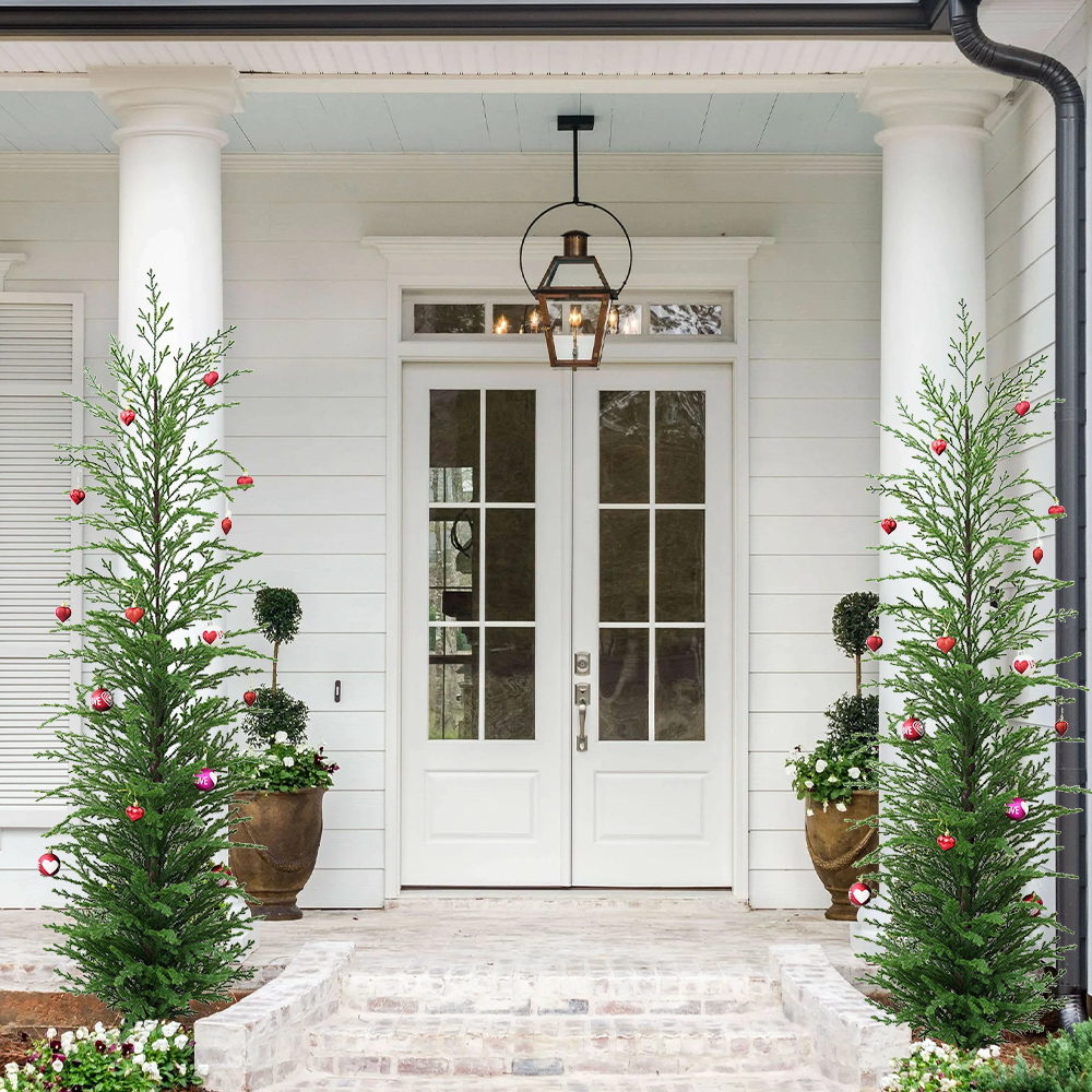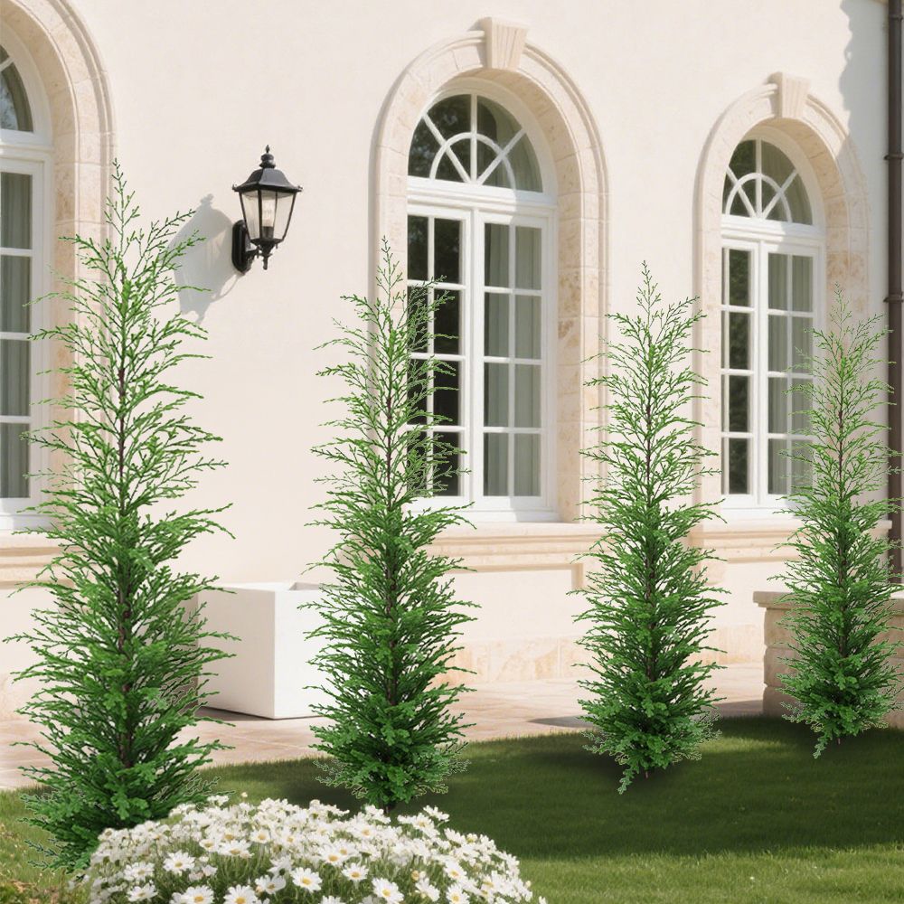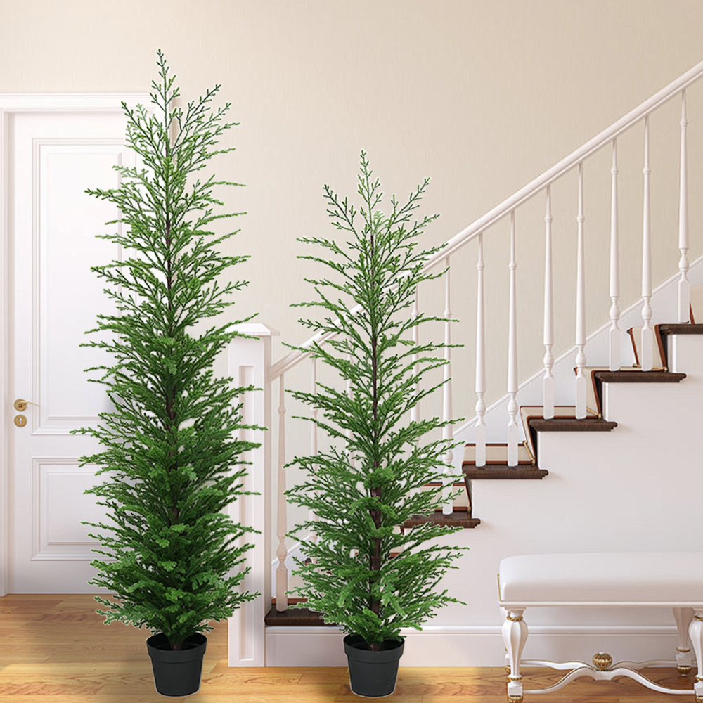 Artificial Topiary Cedar Trees Faux Pine Shrubs Plants Fake Silk Tree Easy Assembly for Decor Christmas