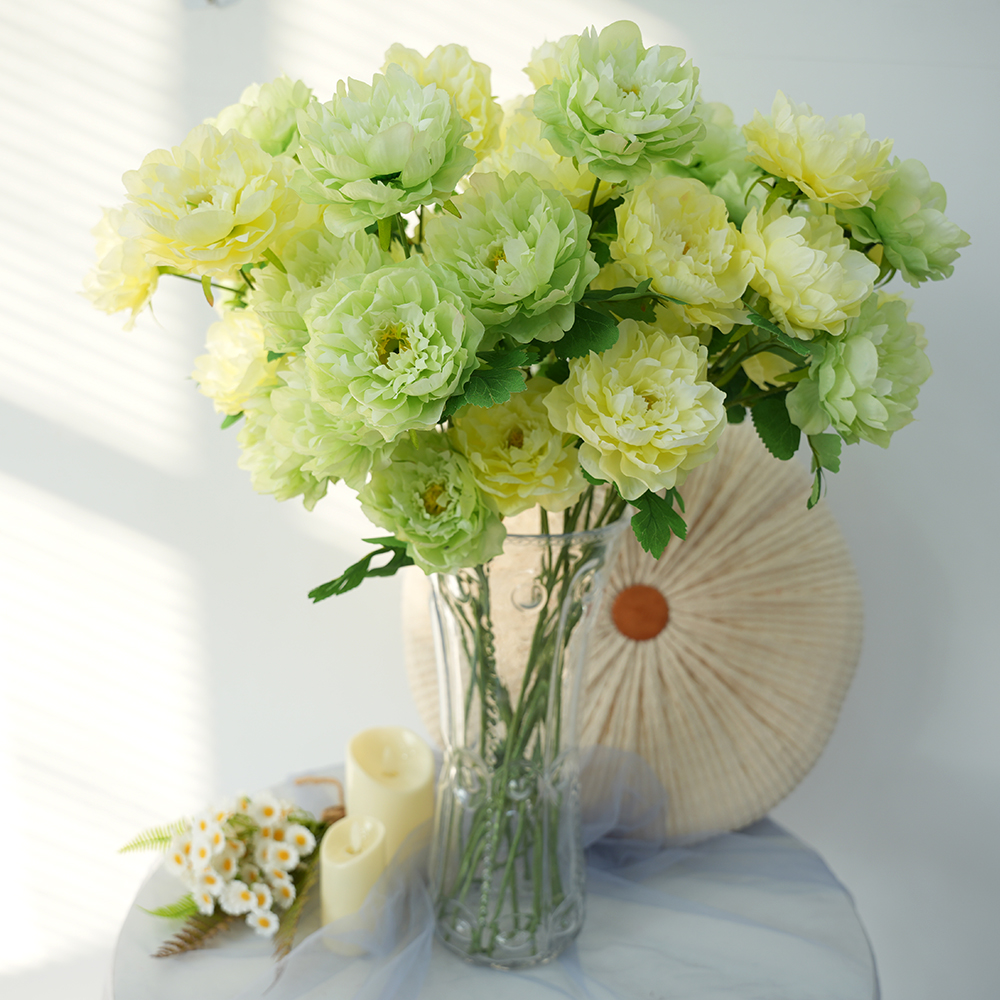 Beautiful 3-Head Peony Artificial Silk Flower Realistic Long Branch Fake Flower for Home Wedding Decoration Living Room Party