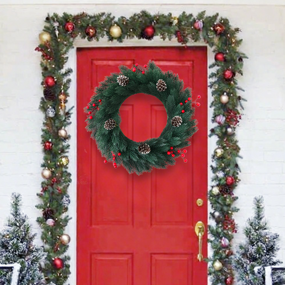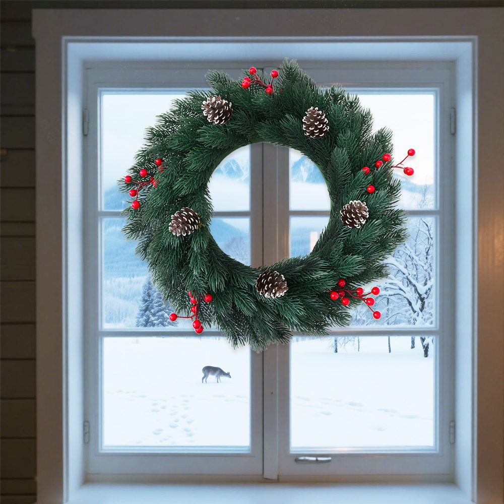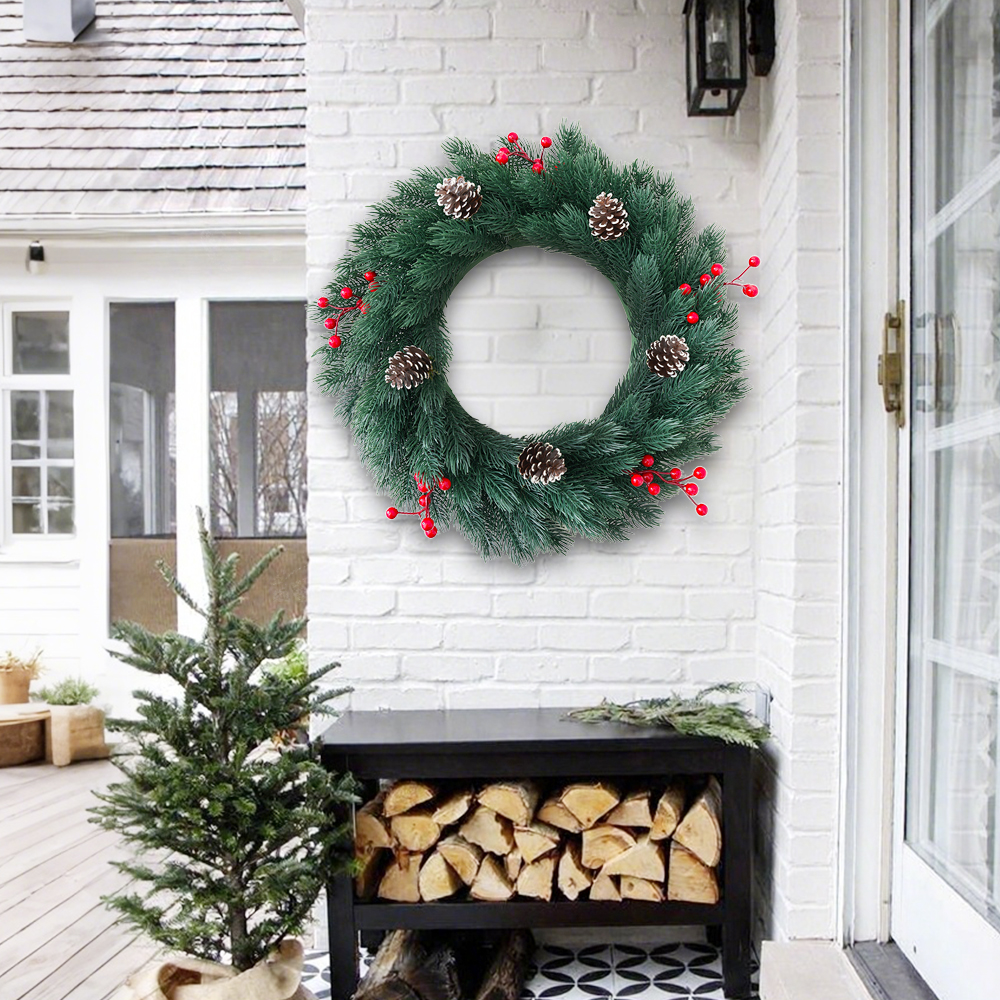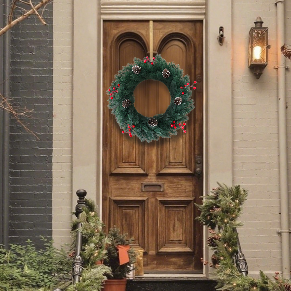 Christmas wreath pine needle red fruit pine coneCreative Window Decoration PE Red Fruit Pine Design Handcrafted Door Hanging Holiday Wreath