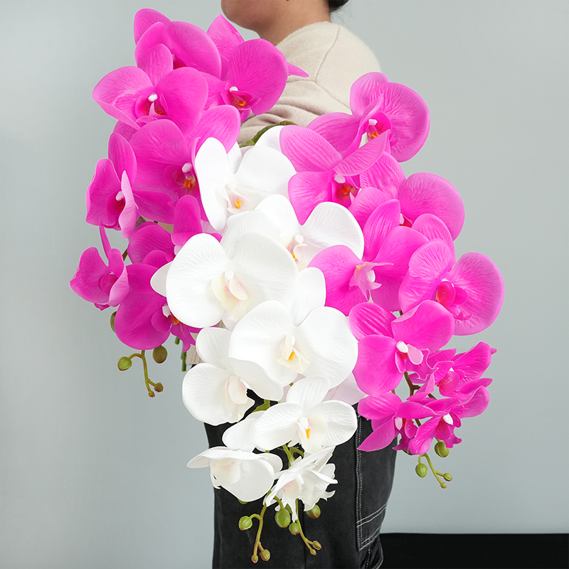 Latex 9-Heads Artificial Butterfly Orchid 3Dprint Large Size Fake Phalaenopsis Silicon PU Real Touch Wedding Home Decor