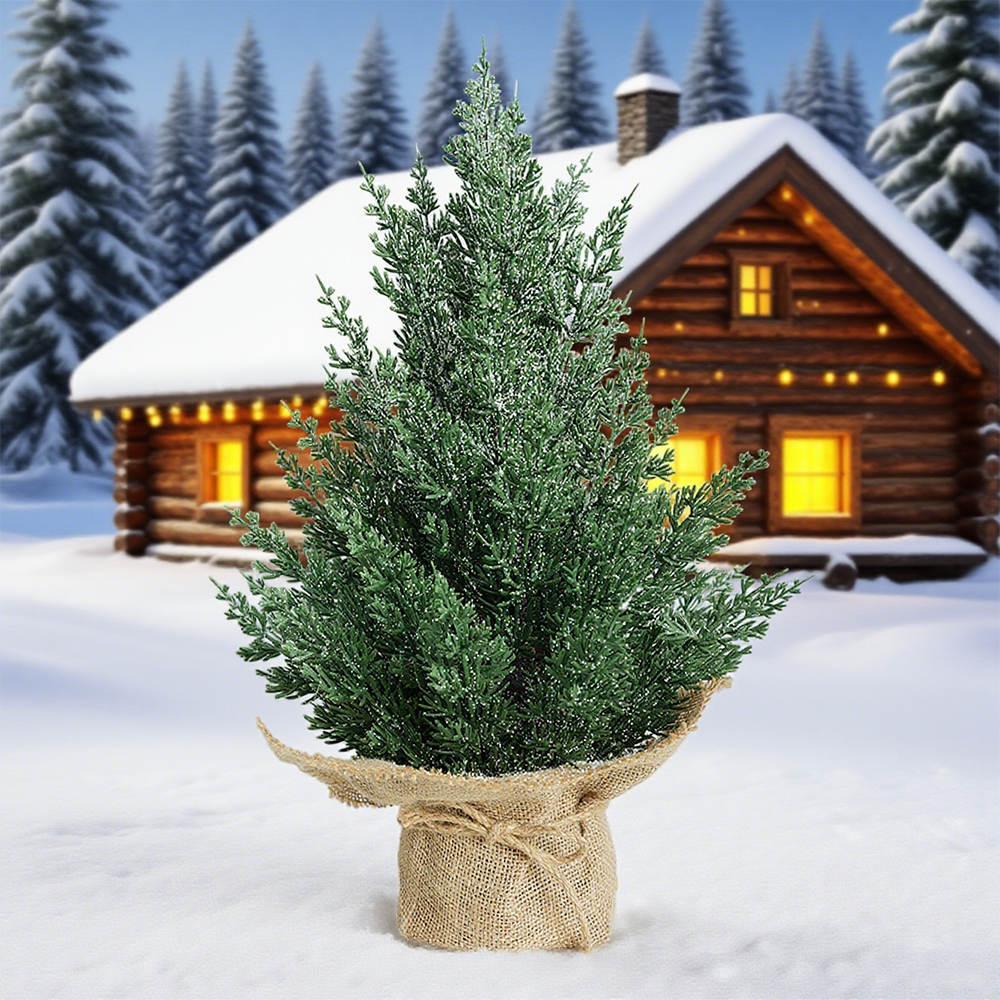 Mini Cedar Christmas Tree Linen Base Christmas Tree Decoration Christmas Day Shopping Mall Window Desktop Display
